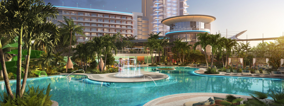 Pier-Sixty-Six Resorts dar. Die Fassade des Hotels samt Hafenkomplex am Intracoastal Waterway gilt als eine der markantesten der Skyline Fort Lauderdales. Der Hafen von Fort Lauderdale ist einer der größten weltweit. Für gleich drei neue Kreuzfahrtschiffe wird