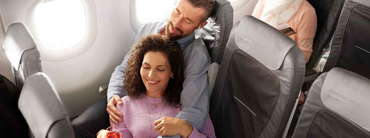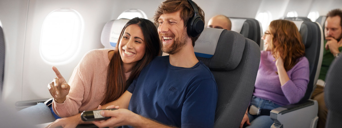 Willkommen an Bord! Der erste Eindruck macht bekanntlich den Unterschied. Aus diesem Grund hat Discover Airlines einen hohen Qualitätsstandard angesetzt, um sicherzustellen, dass den Passagierinnen und Passagieren stets eine saubere und moderne Kabine geboten wird. Dank der Farbgebung in der Kabine – angelehnt an die Unternehmensfarben – können die Gäste eine frische und freundliche Atmosphäre genießen. Die Kabinen heben sich von anderen touristischen Fluggesellschaften durch die Verwendung hochwertiger Sitzprodukte ab, wie z. B. vollflächiger Betten in der Business und eine Premium Economy mit breiten Sitzen, viel Sitzabstand, Fußstützen und großen Monitoren. Auf allen Discover Airlines Flügen haben Kundinnen und Kunden freien Zugang zum Bordunterhaltungssystem. So können Gäste Filme, Serien und Dokumentationen anschauen, Musik hören und aktuelle Fluginformationen erhalten.
