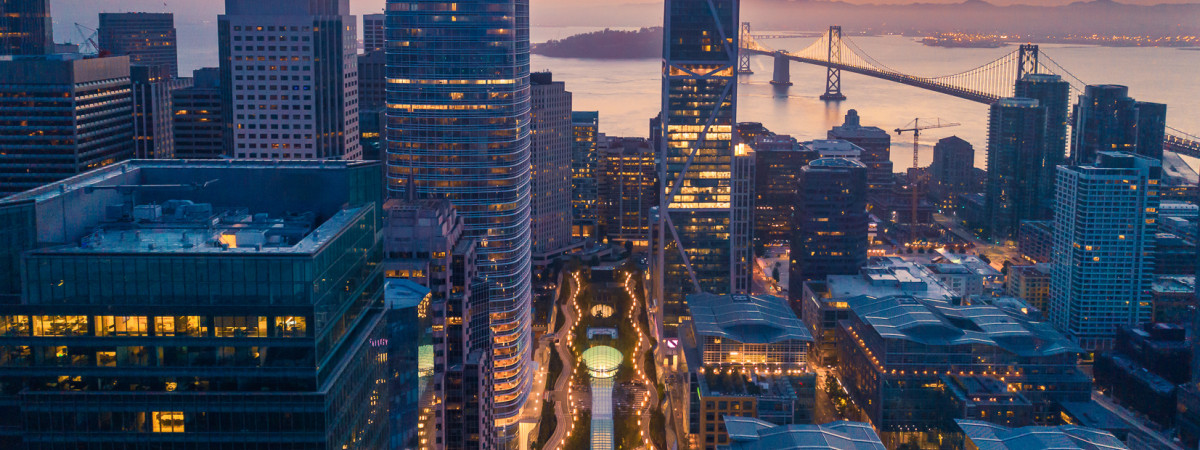 Auf dem Dach des Salesforce Transit Center ist in den vergangenen zweieinhalb Jahren ein neuer öffentlicher Park entstanden – jetzt ist er komplett fertiggestellt. Der 2,2 Hektar große Salesforce Park erstreckt sich über vier Blocks und damit den gesamten Abschnitt des Transit Centers. Er beherbergt 600 Bäume und Palmen sowie mehr als 16.000 Pflanzen, die in 13 verschiedenen botanischen Bereichen angeordnet sind. Neben mehreren Wanderwegen gibt es auch ein Amphitheater, das Platz für maximal 1.000 Personen bietet, ein Café, Kinderspielplätze, Springbrunnen sowie viele Sitzgelegenheiten.