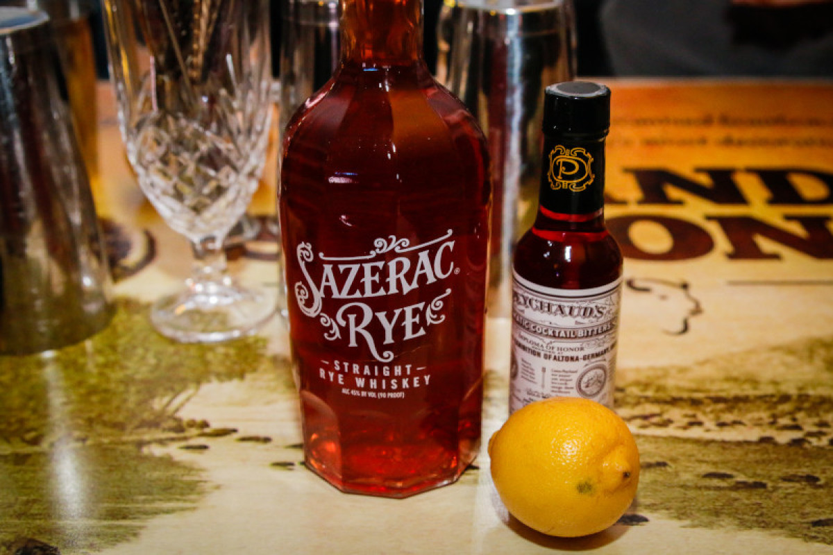 Sazerac Rye Whiskey, Peychaud's Bitter und Zitrone