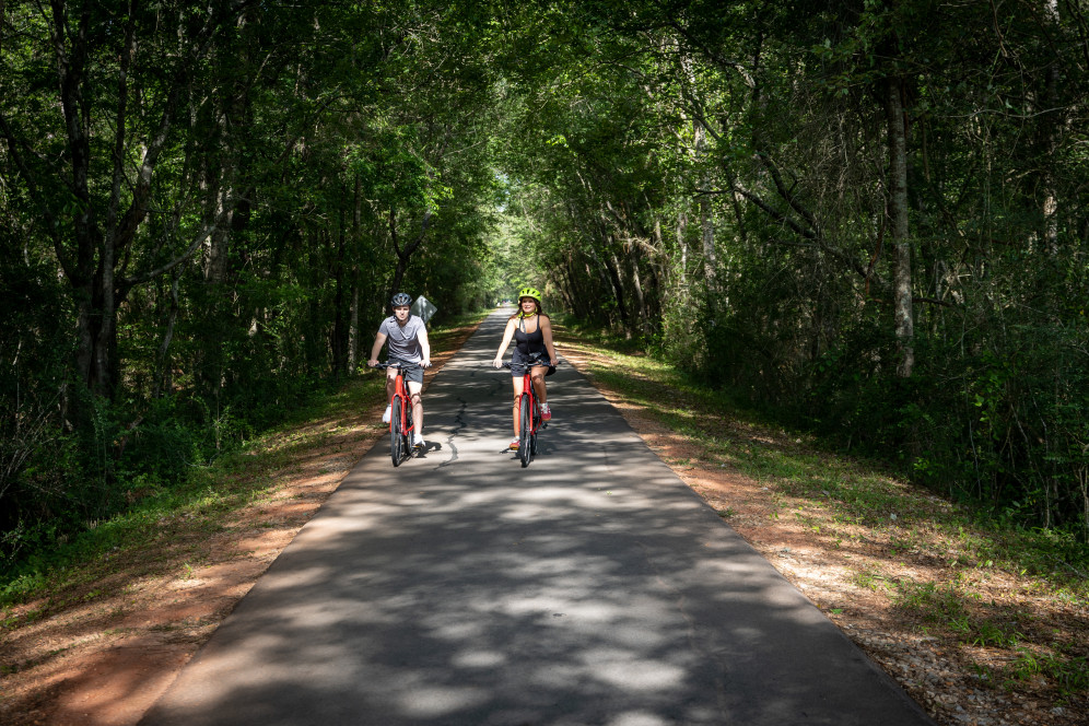 Früher Bahnlinie, heute Natur-Highlight: Der Longleaf Trace führt aus Hattiesburg auf rund 70 Kilometern durch fünf Gemeinden und traumhafte Natur Mississippis. Als Fuß-, Rad- und Reitweg eignet er sich perfekt für kurze oder längere Naturausflüge – drei Meter breit und asphaltiert. Fahrradverleiher wie Jeds Bike Shop oder Moore’s Bicycle Shop in Hattiesburg sorgen für die richtige Ausstattung, und Campingplätze im Umkreis des Trails bieten schöne Rastmöglichkeiten. Eine andere, sehr charmante Übernachtungsoption findet sich auch mit den Tiny-Häusern des Longleaf Piney Resort.