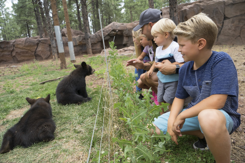 Safari auf amerikanisch – und das absolut familienfreundlich, nämlich im Bearizona Drive-Thru Wildlife Park. Im Fahrzeug geht es durch frei zugängliche Gehege, in denen Schwarzbären, Wölfe und Bisons leben. Viele Tiere kommen neugierig ans Auto und sorgen für unvergessliche Momente. Nach der Fahrt lohnt sich der Besuch von Fort Bearizona, einem 20 Hektar großen Walk-Through-Zoo. Kinder können hier Ziegen füttern oder Greifvögel aus nächster Nähe erleben.