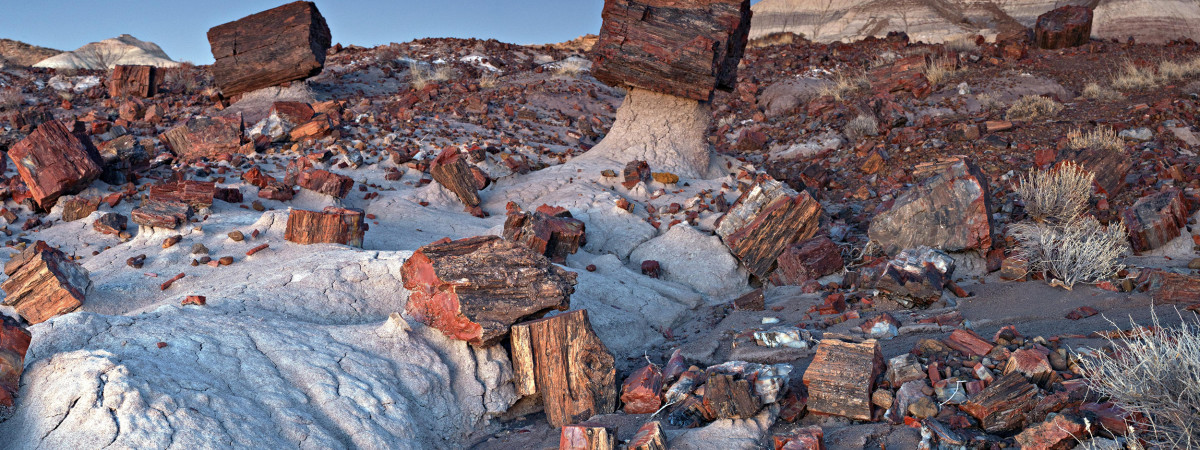 Der Petrified National Forest im Osten Arizonas ist eine der größten Ansammlungen von versteinertem Holz und Bäumen, deren Entstehung 211 bis 218 Millionen Jahre zurückreicht.