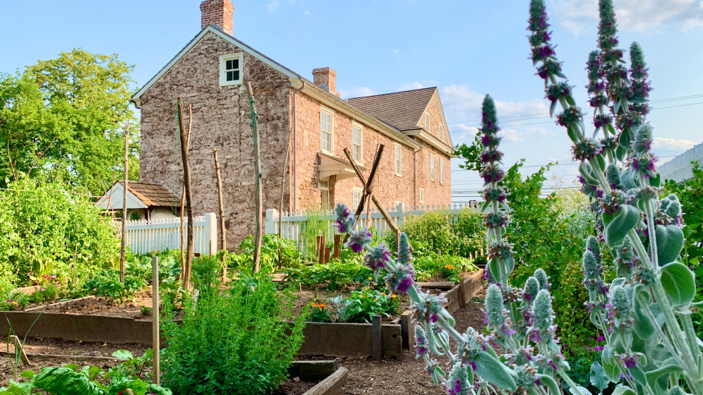 Hinter dem Haus liegt ein traditioneller Pennsylvania-deutscher Gemüsegarten, wo von Juni bis Oktober samstags am wöchentlichen Farmstand historische Gemüsesorten (Heirloom Produce) verkauft werden.