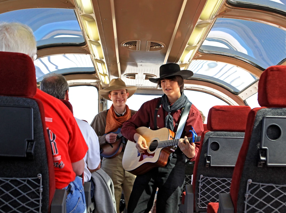 Von März bis Oktober lässt die Grand Canyon Railway auf ausgewählten Fahrten von Williams zum South Rim das goldene Zeitalter des Eisenbahnreisens wieder aufleben.