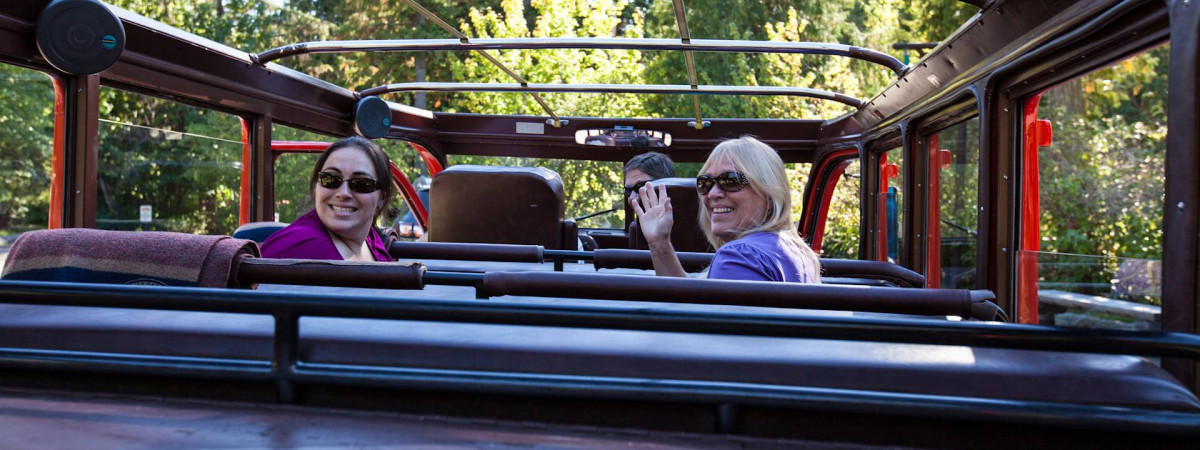 Mit einem historischen roten Bus fahren