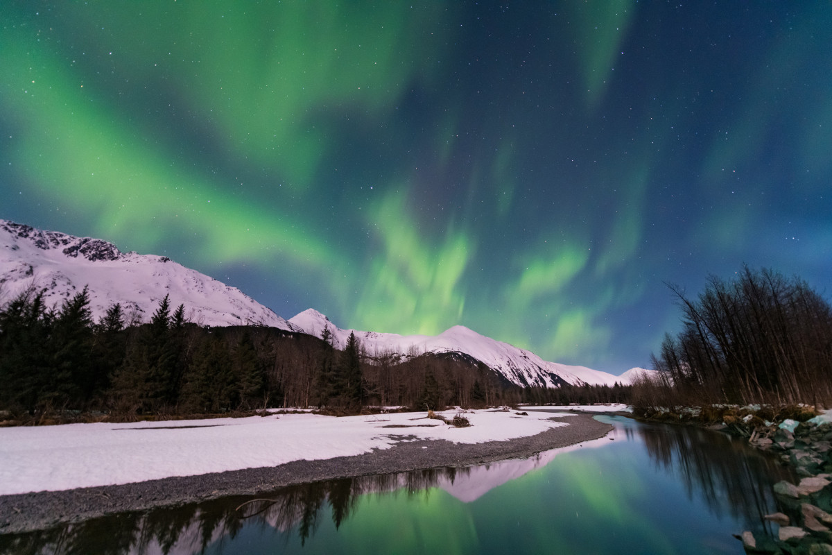 - Auch als Nordlichter bekannt, treffen geladene Teilchen auf die äußere Atmosphäre der Erde und sorgen für ein beeindruckendes Lichtspektakel am winterlichen Nachthimmel über Anchorage. Die Nordlichter können zwischen Mitte August und April beobachtet werden.