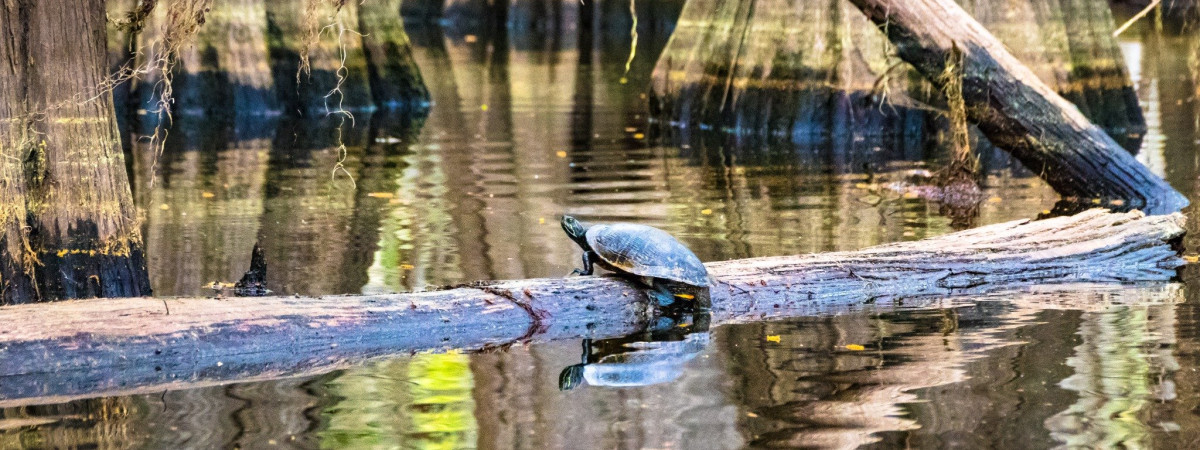 Neben dem Wasser bietet der Park auch attraktive Angebote an Land: Der Caddo Forest Trail führt durch dichte Wälder voller Wildtiere. Waschbären, Gürteltier, Spechte und Rehe sind keine Seltenheit. Wer übernachten möchte, hat die Wahl zwischen einfachen, gepflegten Campingplätzen oder liebevoll renovierten Cabins aus den 1930er Jahren mit moderner Ausstattung. Ein idealer Ort für Wanderungen und Tierbeobachtungen