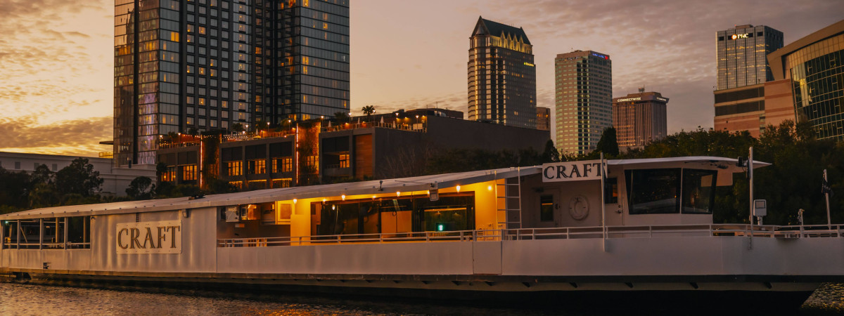 Als erstes Flusskreuzfahrtschiff in den USA mit offener Bordküche werden die Gerichte auf Bestellung auf einem Gasherd zubereitet. Außerdem lädt die Bow & Stern Bar, welche sich in einem alten Boot befindet, zu einem leckeren Cocktail ein. Die Speisen können an Deck, im Innenbereich oder auch an der Bar genossen werden. Mit seiner gehobenen Küche und feinen Auswahl an Cocktails und Spirituosen begeben sich Gäste auf eine einzigartige Entdeckungsreise an Bord der CRAFT, exklusiv in Tampa Bay!