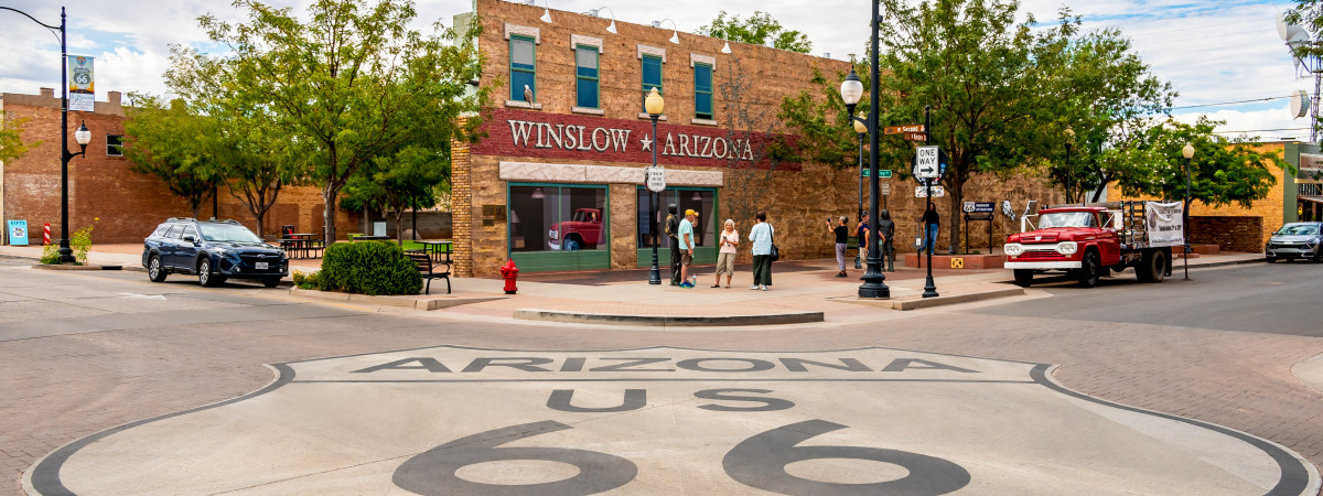 • Fahre durch Winslow, Arizona - eine Ecke ("Standin' on The Corner Park"), die durch den Song „Take it Easy“ der Eagles für immer in Erinnerung geblieben ist.