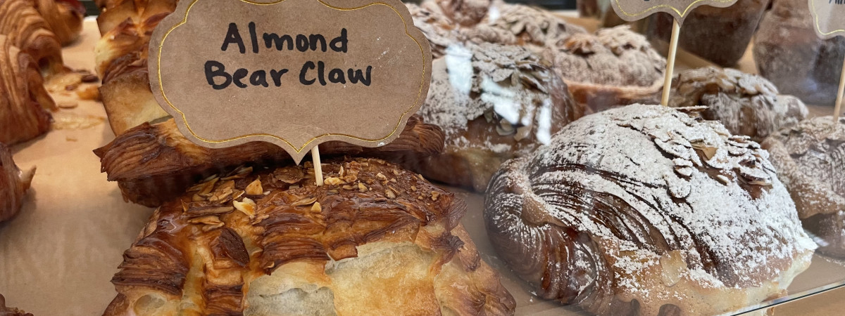 Uns begrüßte neben dem freundlichen Personal eine riesengroße Vitrine, randvoll gefüllt mit Gebäck. Und was für Gebäck: Scones, Muffins, Cronuts, Kuchen Pasteten, Quiches, Kekse, Macarons, Törtchen, Croissants, Cupcakes und so viel mehr. Natürlich gibt es auch Eierspeisen, Sandwiches und andere Köstlichkeiten zum Frühstück oder Mittagessen. Montag und Sonntag ist The Bekery geschlossen.