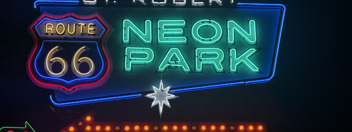 Missouri bietet viele Highlights für Zwischenstopps auf der Route 66. Nun wird im Mai 2025 in Saint Robert ein neues Highlight eröffnet: der erste Route 66 Neon Park des Bundesstaates - eine Hommage an die glorreiche Vergangenheit der berühmten Mother Road, die 2026 ihr 100-jähriges Jubiläum feiert. Der Park zeigt fast ein Dutzend restaurierte Neonschilder, die einst entlang der Route 66 in Missouri leuchteten und nun an die nostalgischen Stopps am Straßenrand erinnern.