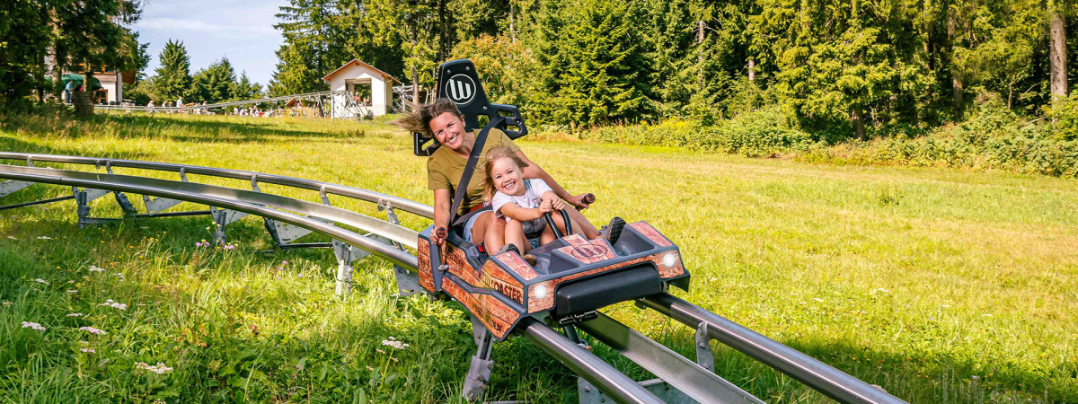 Steige in den Sunrise Apache Alpine Coaster im Sunrise Park Resort in den White Mountains ein und erlebe eine aufregende Fahrt mit atemberaubender Aussicht auf die Berge. Es gibt individuelle Wagen, bei denen die Fahrer ihre Geschwindigkeit mit einer Handbremse selbst steuern können, während sie den Berg hinunterfliegen. Kleine Kinder können auch in Begleitung eines Elternteils fahren. Jeder Wagen hat eine Höchstgeschwindigkeit von 40 km/h und die Wagen halten automatisch einen sicheren Abstand zueinander. Die Achterbahn ist sowohl in der Sommer- als auch in der Wintersaison befahrbar.