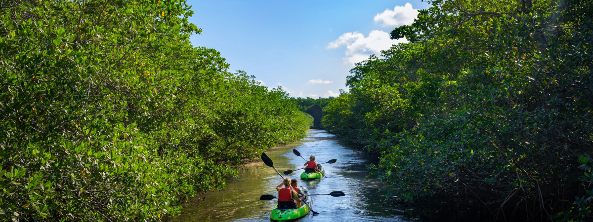 Dank des ruhigen, seichten Wassers, das an den herrlichen, künstlich angelegten Atollstrand am Ufer der Biscayne Bay plätschert, ist der Matheson Hammock Park einer der besten familienfreundlichen Strände im Großraum Miami und Miami Beach. Wenn ihr dort seid, könnt ihr die Kinder zu einer leichten Wanderung über die Holzstege einladen oder mit den gemieteten Kajaks oder Stand-up-Paddelboards durch die Gegend paddeln.