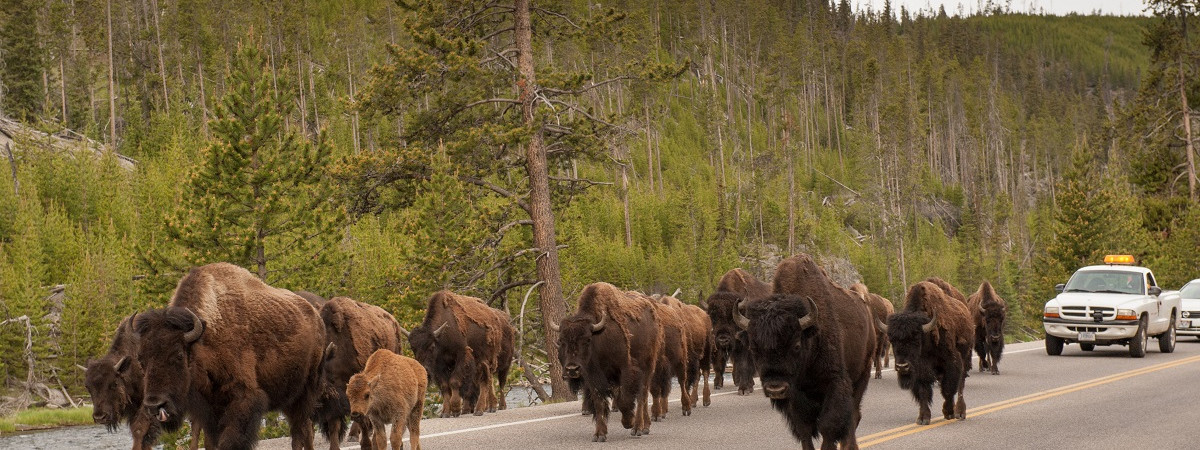 Das Straßennetz im Yellowstone Nationalpark ähnelt einer Acht und es gibt keine Alternativrouten.  Besucher werden gebeten, Geschwindigkeitsbegrenzungen zu beachten und nicht einfach am Straßenrand anzuhalten, sondern die Haltebuchten zu nutzen, um Wildtiere zu beobachten, Fotos zu machen und andere Fahrzeuge vorbeizulassen. Als Grundregel gilt: Alle vier Reifen sollten vollständig rechts von der weißen Linie stehen.
