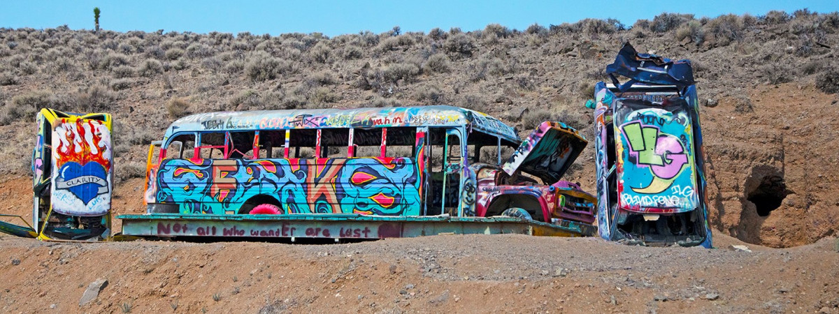 Als ein Staat, der von Goldgräbern und Cowboys gegründet, von Kasinomagnaten aufgebaut und heute von abtrünnigen Künstlern und anderen modernen Freiheitssuchenden besucht wird, hat "gewöhnlich" nie wirklich etwas zu bedeuten gehabt. Verstehen Sie uns nicht falsch, wir lieben unsere unberührte Landschaft, die Weltklasse-Küche und die unzähligen malerischen Annehmlichkeiten. Aber, für die Abenteurer, die ihre zukünftigen Geschichten am Lagerfeuer etwas schmackhafter machen wollen, gibt es auch eine andere Seite, dabei ist es egal, ob es sich um ein Motel mit Clownsgespenst oder einen "Wald" aus Schrottautos handelt. Klar ist: Unsere Macken sind unsere Vorteile. Ganz gleich, ob Sie in den tiefen Verschwörungen auf und um den Extraterrestrial Highway stecken oder nur an der Oberfläche der Fremont Street kratzen, Sie haben es nie weit zu den seltsamen Wahrzeichen Nevadas, die so ungewöhnlich sind, dass sie begeistern.
