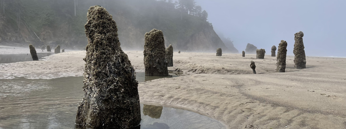 Der Neskowin Ghost Forest an der Küste Oregons ist einer turbulenten Wetterlage zu verdanken: Ein Sturm, der im Winter 1997 die Küstenstadt Neskowin heimsuchte, legte die Überreste eines Fichtenwaldes frei. Angenommen wird, dass die majestätischen Bäume einst bis zu 60 Meter in den Himmel ragten, bevor sie – wie Wissenschaftler vermuten – höchstwahrscheinlich durch ein Erdbeben oder einen Tsunami zerstört wurden. Übrig geblieben sind rund 100 Baumstümpfe, die sich wie Mahnmale aus dem Sand erheben und nicht nur bei Ebbe eine mystische Atmosphäre schaffen.