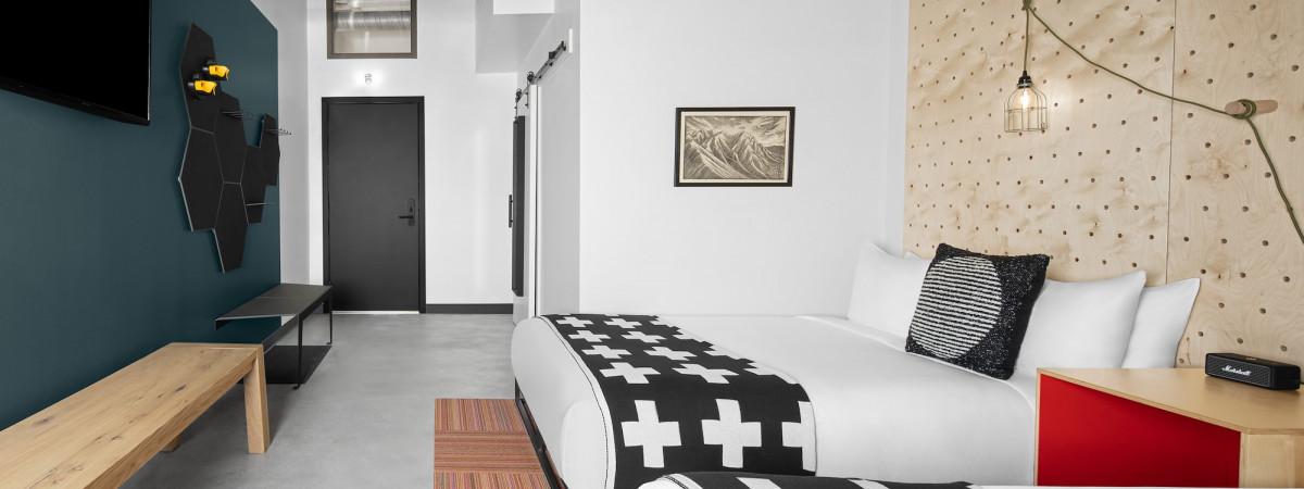 Wer ausgefallene Unterkünfte auf Reisen liebt, ist im evo Hotel in Utahs Hauptstadt genau richtig. 50 Zimmer in 5 verschiedenen Design-Kategorien stehen zur Auswahl. Was alle gemeinsam haben: Komfort, Funktionalität, Farbintensivität und Style mit dem gewissen Extra – wie beispielsweise Regendusche, Großzügigkeit an Raum, Terrasse oder smarte Interior-Elemente.