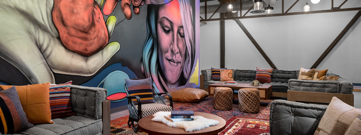 So kommen nicht nur Individualreisende auf ihre Kosten, sondern auch Familien und Gruppen inklusive ADA-Konformität. Neben dem Industrial-Look gehört zum evo auch eine Skate-Area dazu. Und wer Boulder-Fan ist: Im Zimmerpreis ist Zugang zum @saltlakeboulderingproject inklusive. Die Murals in der Lobby und an vielen anderen Stellen wurden von den Utah Local Heroes Adam und Anastasia Clark geschaffen.