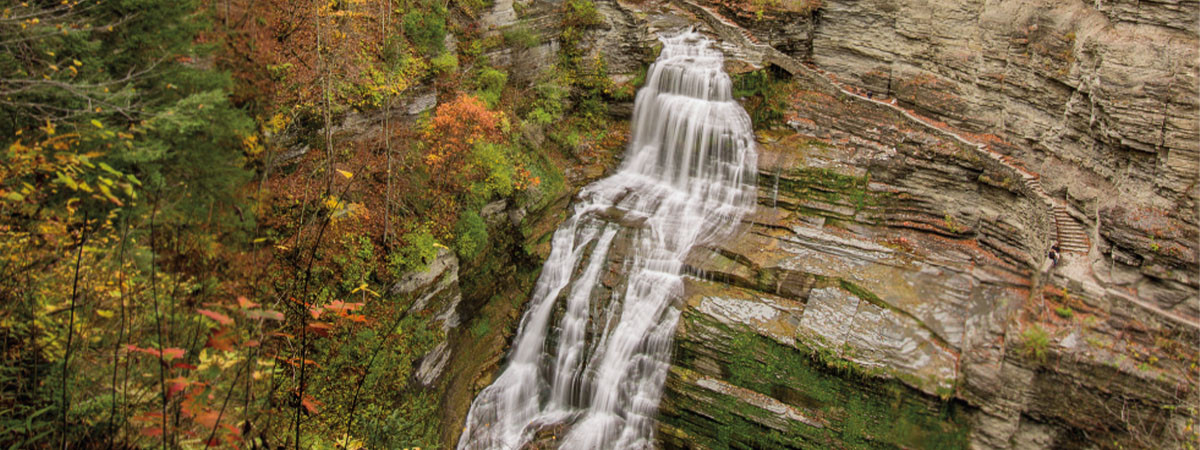Welcome to Ithaca, NY! Located in the heart of New York State's Finger Lakes region, Ithaca is "Gorges" in every season. Explore the natural beauty of Ithaca. Spend a sunny day touring one of the many waterfalls and gorges formed thousands of years ago during the Ice Age, or relax at the largest lake in the Finger Lakes, Cayuga Lake. New York State's public forests boast over 28,000 acres perfect for skiing, hiking, mountain biking, and exploring. On the Cayuga Lake Wine Trail, you can explore the nation's first organized wine trail, tasting and toasting wine, beer, cider, and spirits. At the end of the day, rest in one of Ithaca's inviting hotels or charming bed and breakfasts, ranging from luxurious to family-friendly.
