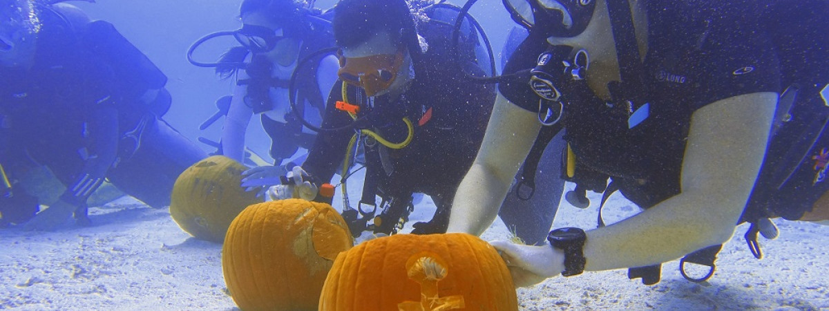 Handwerkliches Geschick ist Ende Oktober gefragt, wenn talentierte Taucher beim Underwater Pumpkin Carving Contest versuchen, den schönsten Kürbis zu schnitzen. Die größte Herausforderung bei dieser ungewöhnlichen Halloween-Tradition ist es, den hohlen und somit schwimmenden Kürbis in der Tiefe zu halten und zeitgleich neugierige Riffbewohner abzuwehren, die das leckere Fruchtgemüse anknabbern wollen.