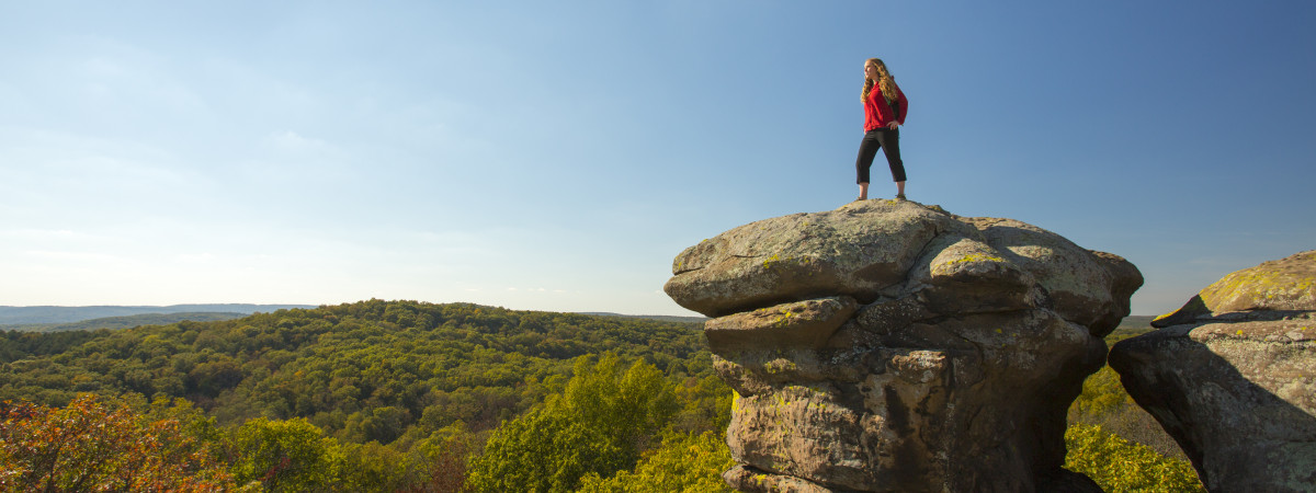 Für naturverbundene Familien lohnt sich ein Besuch im Süden von Illinois. Hier wartet ein großes Outdoor-Paradies, das entdeckt werden will. Ein absolutes Highlight ist der Shawnee National Forest, der mit Wanderwegen, Wildtierbeobachtungen und atemberaubenden Ausblicken auf die Besucher wartet. Besonders beeindruckend sind die spektakulären Felsen im Garden of the Gods, der malerische Giant City Nature Trail im Giant City State Park und der geheimnisvolle Cave-In-Rock State Park - eine beeindruckende 17 Meter breite Kalksteinhöhle, die einen Blick auf den Ohio River bietet.