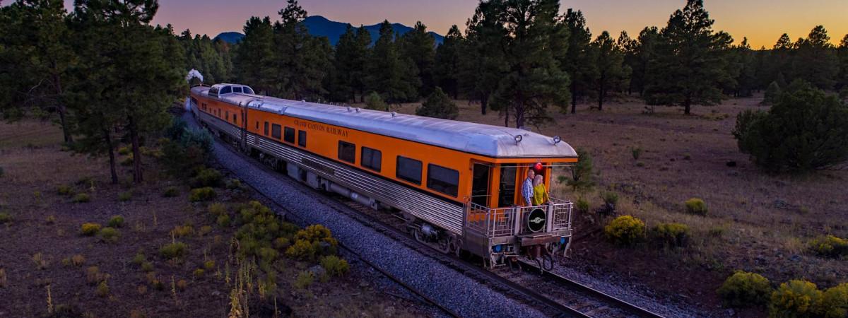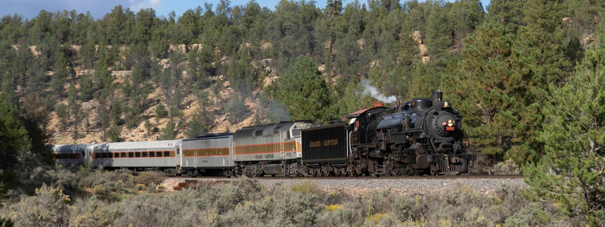 Erleben Sie den Grand Canyon auf eine einzigartige Weise mit Grand Canyon Railway & Hotel. Seit 1901 bringt die historische Eisenbahn Besucher von Williams, Arizona, direkt zum Südrand des Grand Canyon. Die 64-Meilen-Strecke führt durch atemberaubende Landschaften und bietet ein nostalgisches Reiseerlebnis mit restaurierten Waggons und Live-Unterhaltung.