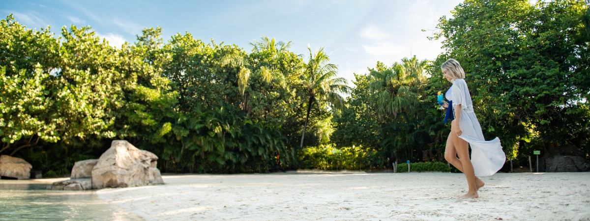 - Private, in die tropische Vegetation eingebettete Cabanas können gegen Aufpreis gemietet werden. Sie sind mit Tisch und Stühlen, Liegen und Handtüchern ausgestattet und bieten bis zu sechs Gästen Platz.