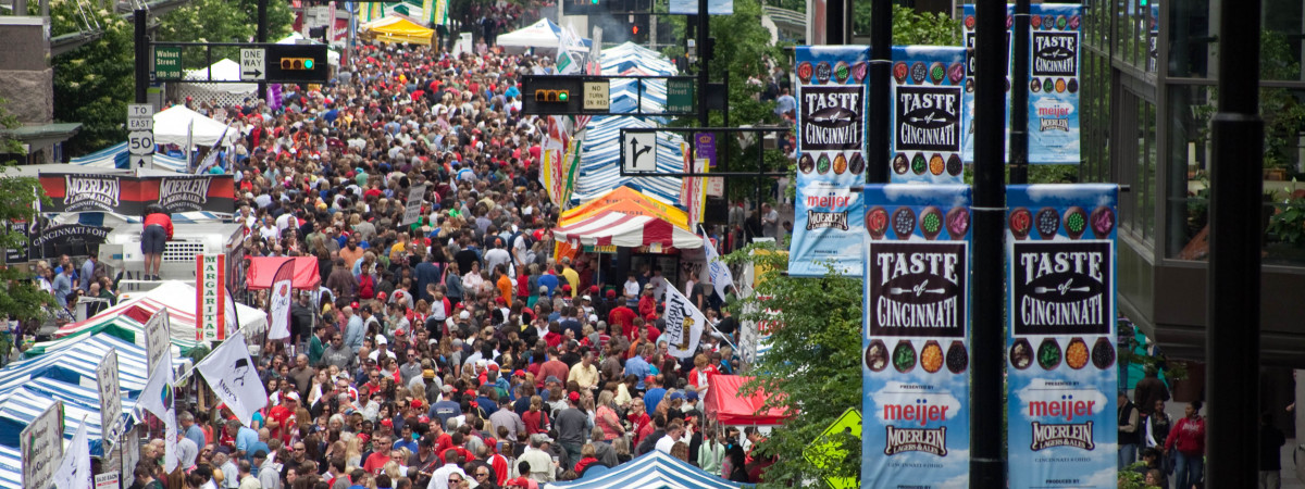 Im Sommer finden in der Cincy Region zahlreiche Veranstaltungen statt. Dazu gehört das Taste of Cincinnati Festival, welches jedes Jahr am Wochenende des Memorial Day in der Innenstadt von Cincinnati veranstaltet wird. Es wurde 1979 ins Leben gerufen. Von den damals 5.000 Teilnehmern bis zu den heutigen 550.000 Besuchern hat sich Taste of Cincinnati zu einem der größten Straßenfeste des Landes entwickelt. Mehr als 50 Restaurants und Imbisswagen nehmen teil und bieten ihre köstlichen Gerichte an. In den Wochen vor dem Taste of Cincinnati-Festival werden die Gerichte vorgestellt und für die prestigeträchtigen Best of Taste Awards nominiert. Taste of Cincinnati ist auch ein Musikfestival mit Live-Unterhaltung durch lokale und nationale Musikstars, die während der Veranstaltung auf mehreren Bühnen auftreten.