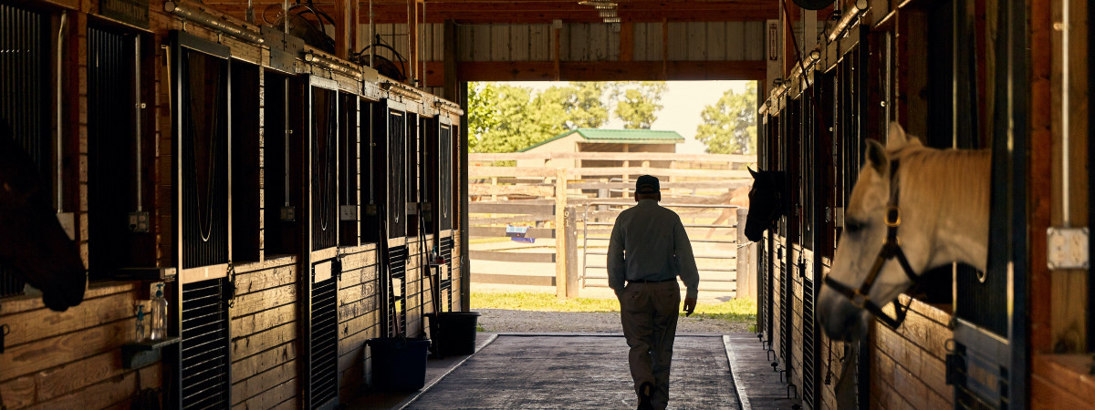 Ställe der Old Friends FarmEhemaliges Rennpferd auf Old Friends Farm