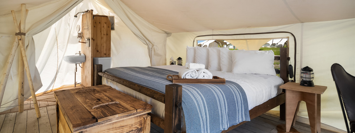 Ein Erlebnis der besonderen Art bieten die Glamping Parks von Under Canvas. Hier haben Sie die Möglichkeit ein komfortables Camping-Erlebnis in wunderschöner Natur in der Nähe der schönsten Nationalparks zu genießen.