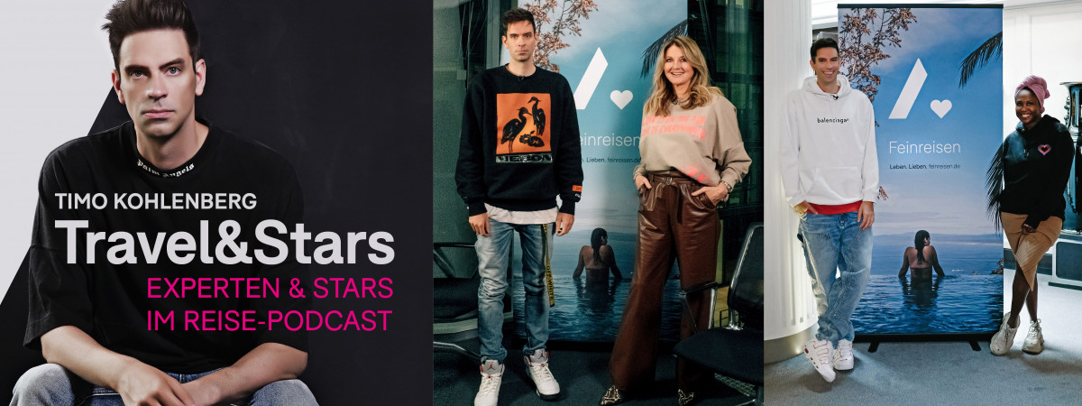 Auch in den nächsten Podcast-Folgen von „Travel&Stars“ sind namenhafte Persönlichkeiten wie Designer Dawid Tomaszewski eingeladen, der mit einer Vielzahl an Insider-Tipps über die besten Stadtviertel Londons spricht, sein Lieblings-Fast Food Restaurant in Los Angeles verrät und über seine große Reiseliebe Portugal schwärmt.