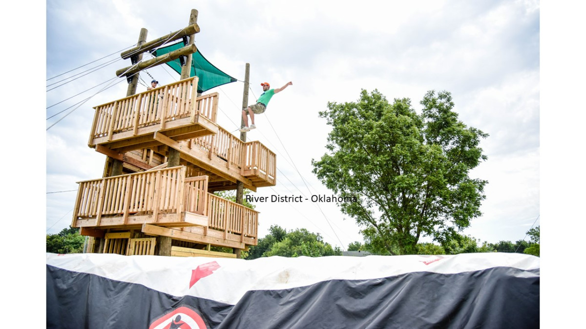 Riversport Adventure Park at Boathouse District in Oklahoma City. Abgesehen von diversen Vergnügungen auf dem Land – wie den SandRidge Sky Trail – kann man sich im Riversport Rapids Whitewater Rafting & Kayaking Center Boote ausleihen und ins kühle Wasser stürzen – je nach Vorkenntnissen in wildere oder sanftere Gewässer.