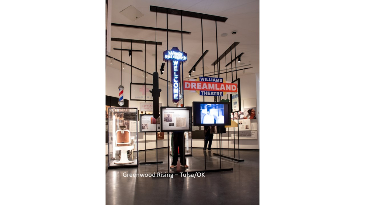 Quasi als „späte Wiedergutmachung“ wurde das Greenwood Rising Black Wall Street Historic Center 2021eröffnet. Dieses Museum arbeitet auf ebenso emotionale wie eindrucksvolle Weise mit Dokumenten, Fotos und viel Multimedia das Tulsa Race Massacre auf.