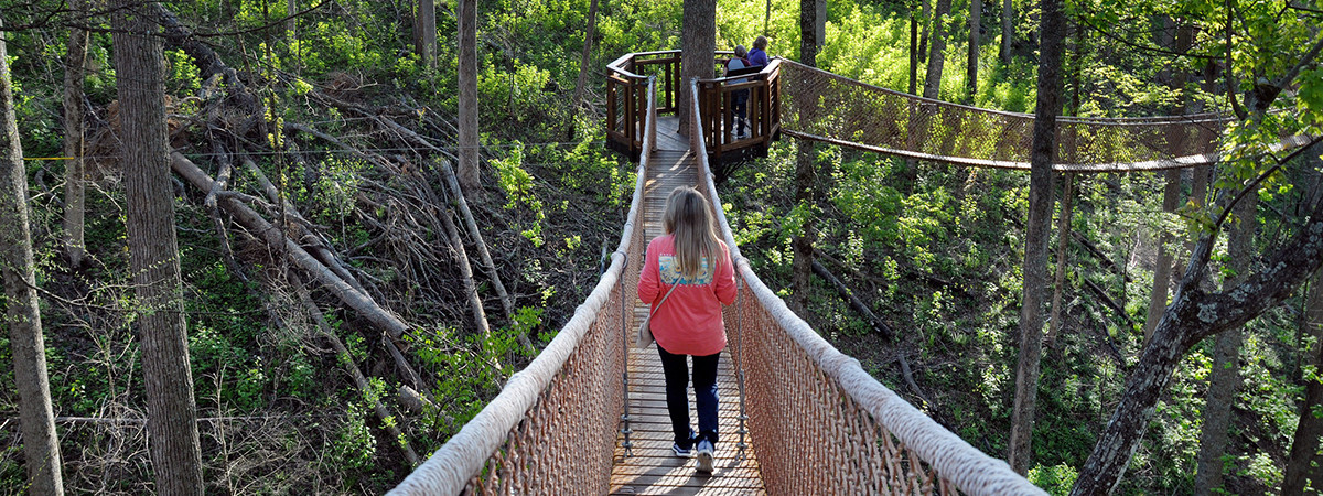 Gatlinburg bietet außerdem regionale Spezialitäten mit ein paar Prozent mehr. Craft-Bier, Merlot oder "Moonshine“-Whiskey nach Art alter Schwarzbrenner. Die Moonshine-Destillen erinnern an die lange vergangenen Tage der Prohibition, als die Alkoholschmuggler hier noch vom Sheriff durch die Berge gejagt wurden. Heute ist das Brennen wieder legal. Man kann also ganz unbesorgt die Brände aus den Distillen, die Biere der Smoky Mountain Brewery oder die Weine der drei regionalen Kellereien genießen, die hier am Winery Square verkostet werden. Wer hoch hinaus will, spaziert gemütlich oder ziplined zügig durch die Baumwipfel im Bergpark Anakeesta, wo es auch einen Aussichtsturm gibt. Die Sky Bridge ist Nordamerikas längste Fußgänger-Hängebrücke.