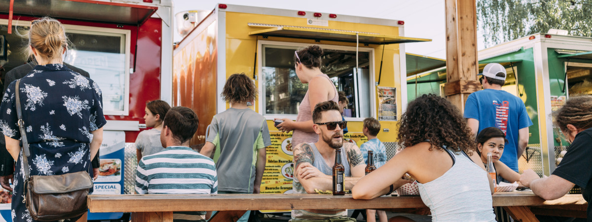 Kati Portland in der Southeast Division Street by David Alvarado, Travel PortlandPortland Mercado im Stadteil Foster-Powell by Isaac Lane KovalHawthorne Asylum Food Cart Pod by Travel Portland