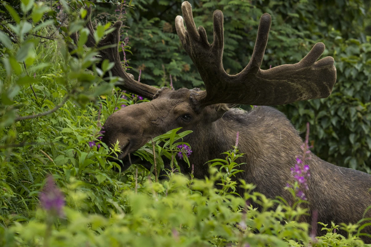 Moose eating fireweed | Carl Johnson / Visit Anchorage