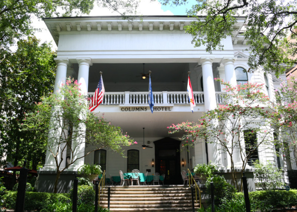 Das Columns Hotel ist ein perfektes Beispiel: hohe Säulen, breite Veranda, Blick auf die historischen grünen Streetcars, die direkt vor der Tür vorbeirumpeln. Hier siehst Du, wie wichtig Außenräume in New Orleans sind – Schatten, Luftzug, viel Platz, um im Freien zu sitzen.